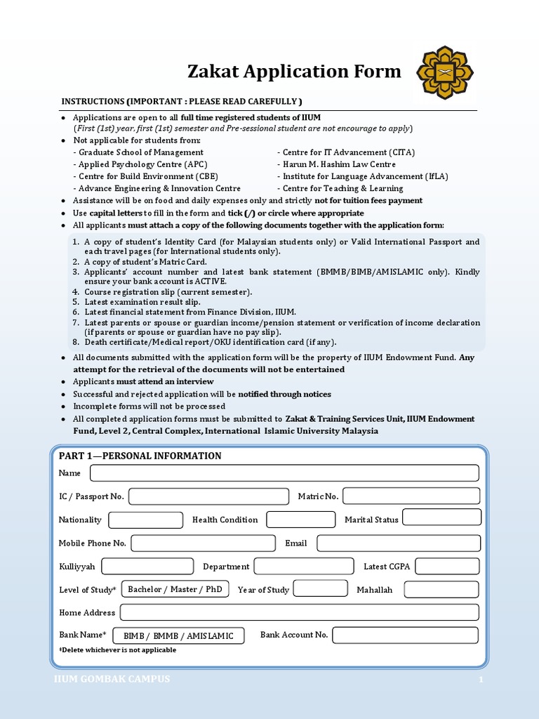 Iium Zakat Application Form Fill Online Printable Fillable Blank Pdffiller